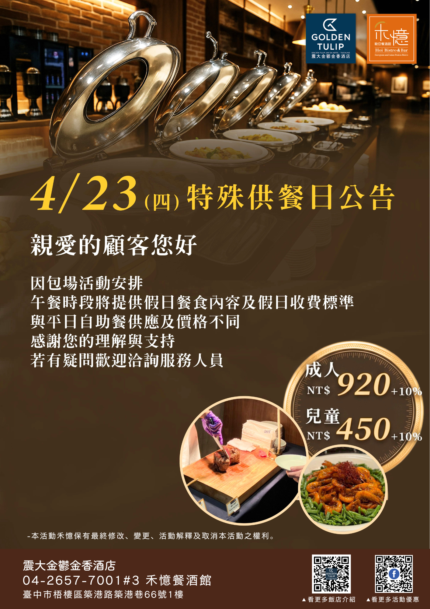 嶄新的金鬱金香客房時尚設計,配備英國頂級斯林百蘭舒眠名床,每間房間均提供全景落地窗景,自然簡約的風格,搭配高美濕地夕陽輝印情境地毯,讓每位入住旅客均能充分感受到台中海線的魅力與絕佳的居住舒適。