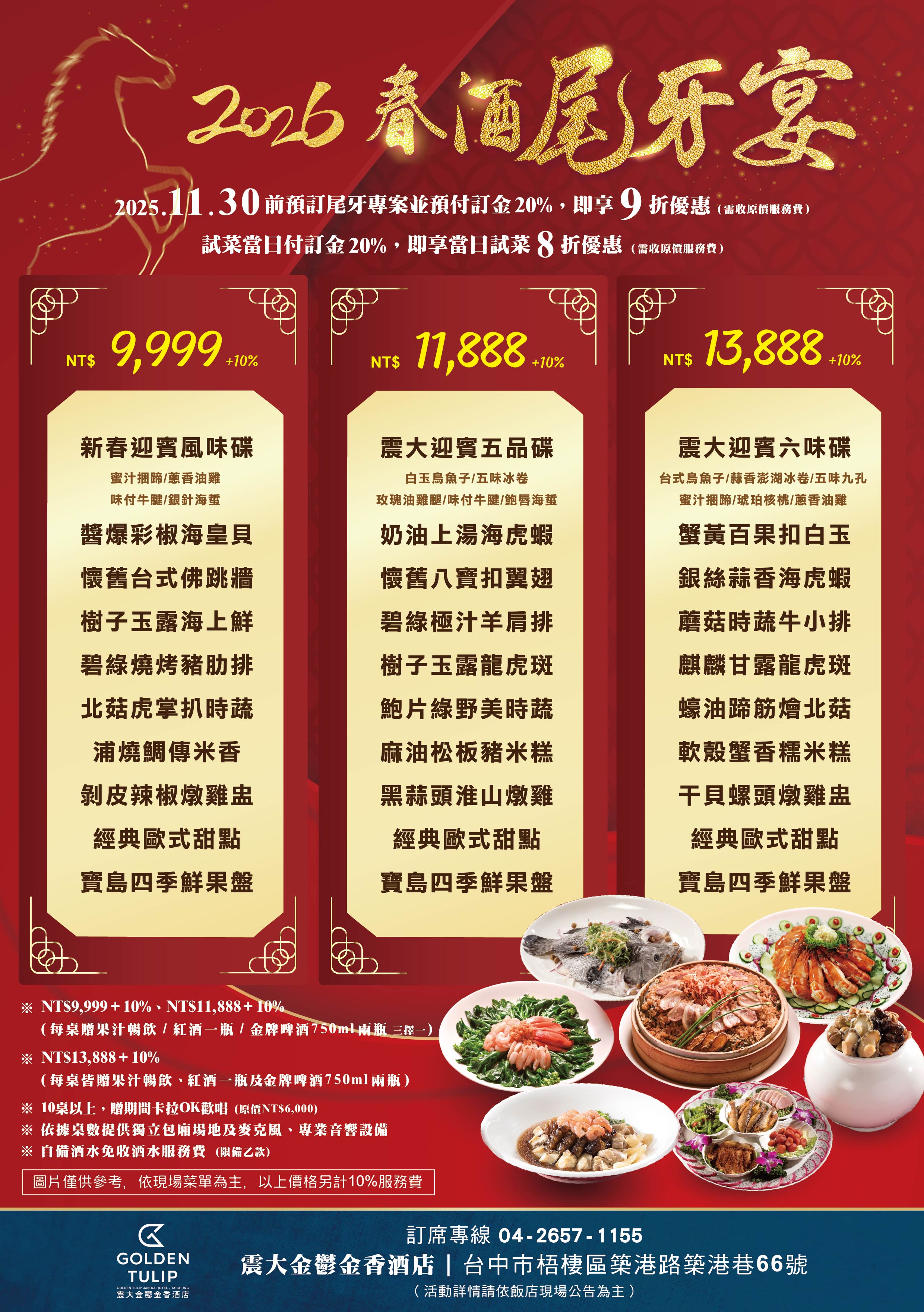 2025/11/30(日) 前預訂+付訂金,享9折優惠!(服務費另計)